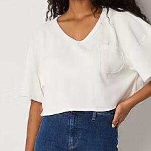 Elevate your casual wardrobe with this white V-neck cropped top.