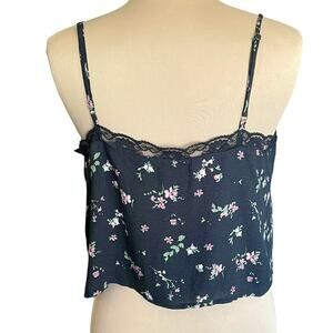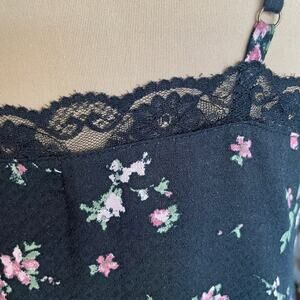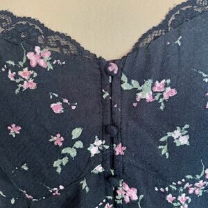 Arizona Y2K Babydoll Dark Floral Top Size XL Lace Trim Fairy Grunge Whimsygoth. Covered buttons down front. Lace trim. Adjustable straps. There is an area on the front with slight pulls that is almost unnoticable. See final picture. Otherwise in very good preowned condition.
