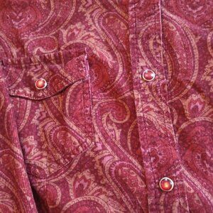 Is almost western inspired in my opinion. Has beautiful buttons and is incredibly soft corduroy due to the 100% cotton! Very fitted; medium to small in size.