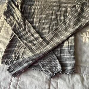 Arizona gray striped Mock turtleneck sz S ruffled hems casual autumn minimalist