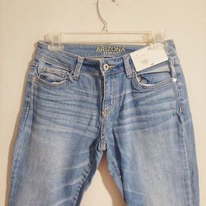 Arizona jean company cropped jean jeggings new with tags with dark bottom frayed ends so cute on great festival jeans .They have a little bit of stretch to them for a perfect fit everytime .
