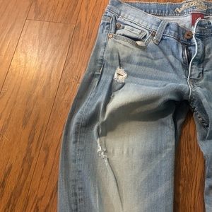 These jeans were bought with the holes. Loved these jeans just don’t fit anymore.