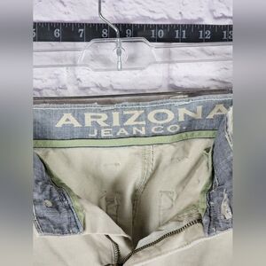 Men's Arizona Jean Company khaki pants in size 36x30, made from 100% cotton. The pants feature a classic beige color, a flat front design, front and back pockets, and belt loops. Versatile and suitable for casual or semi-casual occasions.