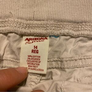 Arizona tan khaki pull on long cargo Bermuda shorts cotton stretch blend girl 14