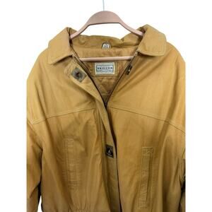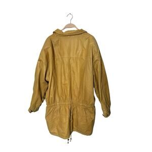 Arizona y2k 90s mustard Tan yellow leather jacket cinch waist plus 1x