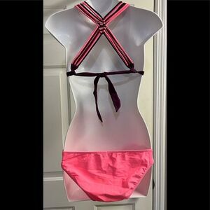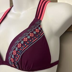 Bikini top- eggplant purple, bright salmon and turquoise