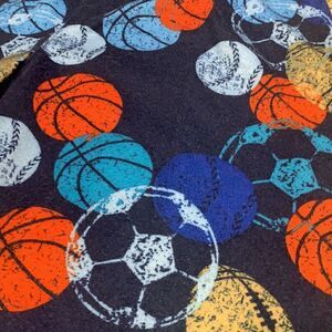 Arizona PJ Pajama Pants Boys 10 decorated with soccer balls, footballs , basketballs, and baseballs.