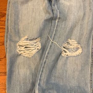 Arizona size 5 highest rise denim jeans slouchy fit with relaxed leg. These jeans are awesome., Distressed, very soft and a light wash and very high waisted. You’re going to love them. NWT and smoke free/pet free home