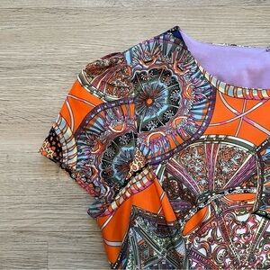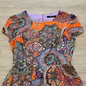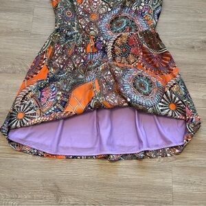 Ark & Co A-Line Cap Sleeve Mini Dress Boho Orange Multicolor Lined Back Zip Sz L
