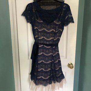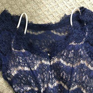-Beautiful nude illusion navy blue dress with tulle skirt accent