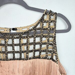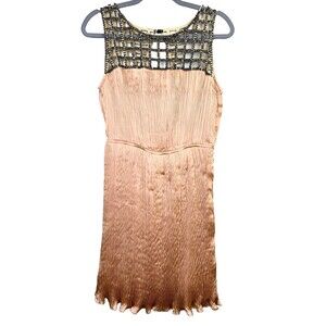 Ark & Co. Peach Pink Beaded Sleeveless Pleated Cocktail Dress Boho Flapper Sz M