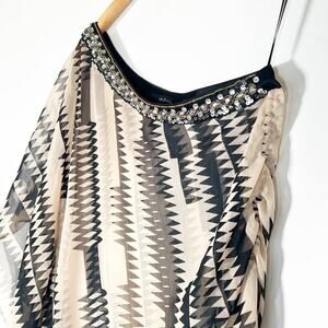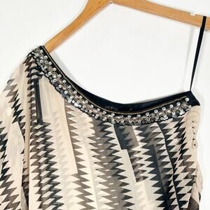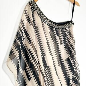 Ark & Co Tribal Asymmetrical One-shoulder Beaded Cover-up Blouse Top Black Cream