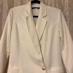 Ark & Co White Single Gold Button Longline Blazer Jacket Tuxedo