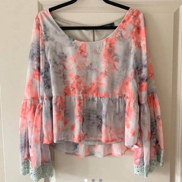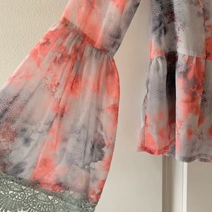 Bell sleeve floral blouse. No size tagged, but fits like Small.