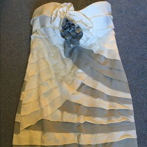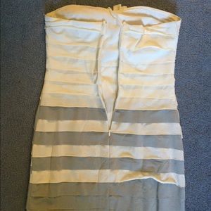 Knee length strapless dress. 5% spandex. Good for summer/spring