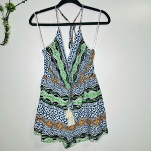 Ark & Co. Bohemian Blue Green Aztec Shorts Romper