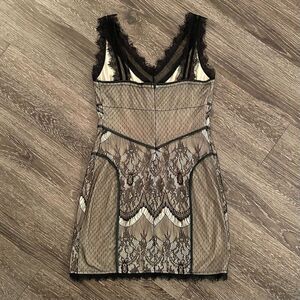 Gently worn in excellent condition lace dress. This style is very Y2k. No size tag but measurements are included. It would best fit a size xs/s