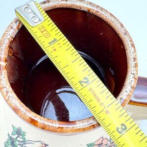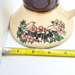 Arkansas Ceramic Pottery Mug Birds Flowers Spill-Proof Brown Beige Vtg 2