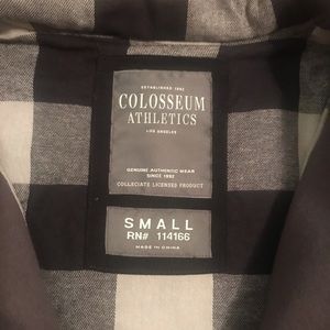 Colosseum Athletics Arkansas Razorback Jacket- New with Tags. Gray Jacket with Black and Gray Plaid Lining can fold down for plaid collar, Kangaroo Pockets.