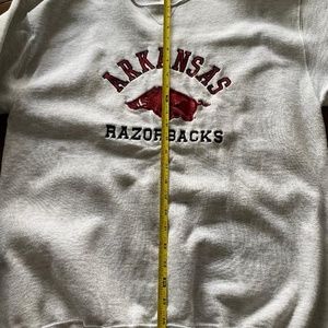 From 1980's. There are 2 faint stains (circled in photo) but otherwise great condition. Autographed by some of the basketball players from the 80's. (Scotty Thurman, Corey Beck, Roger Crawford, Alex Dillard and more) 29" from top to bottom, 21" wide, size Large. Unisex.