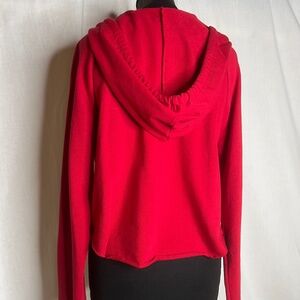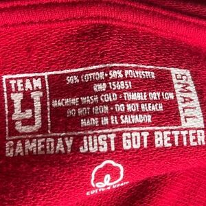 Time to support our Razorbacks! This sweatshirt is extremely versatile! Spring wear when there is still a nip in the air, fall when getting cooler, and winter worn under a heavy coat for warmth. It is somewhat cropped with the original hem (or really no hem) on the length and the sleeves.