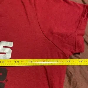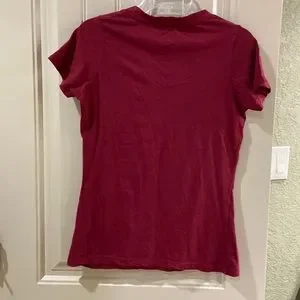 Junior’s Pullover Cap Sleeve Tee with a Reinforced V Neckline. Vinyl Design on Front Created to Look Distressed. Tailored Fit and 100% Cotton and Machine Washable! Cute Tee by Rivalry Threads Brand, Size Large (11/13). See Measurements for Specifics on Size! EUC!
