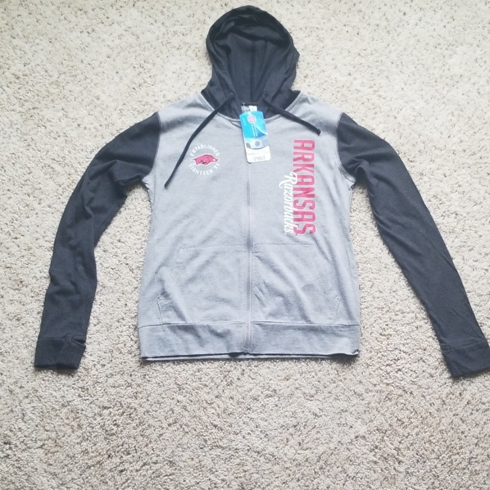 officially licensed collegiate product. 60% cotten/40% polyester. Zip up.