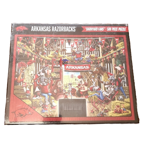 500 piece puzzle featuring Arkansas Razorbacks theme. Vibrant colors and detailed artwork.