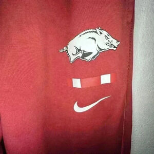 Show your support for the Arkansas Razorbacks with these Nike Dry Fit Sweatpants. Designed for adults in size small, these sweatpants are perfect for any fan of the team. Made by Nike, a trusted brand in sportswear, these sweatpants are sure to keep you comfortable and stylish while you cheer on your team.