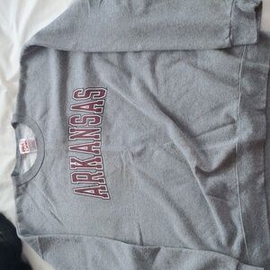 1 red oak sportswear grey fleece sweatshirt with Arkansas print on chest size 2xl(some staining see photos)