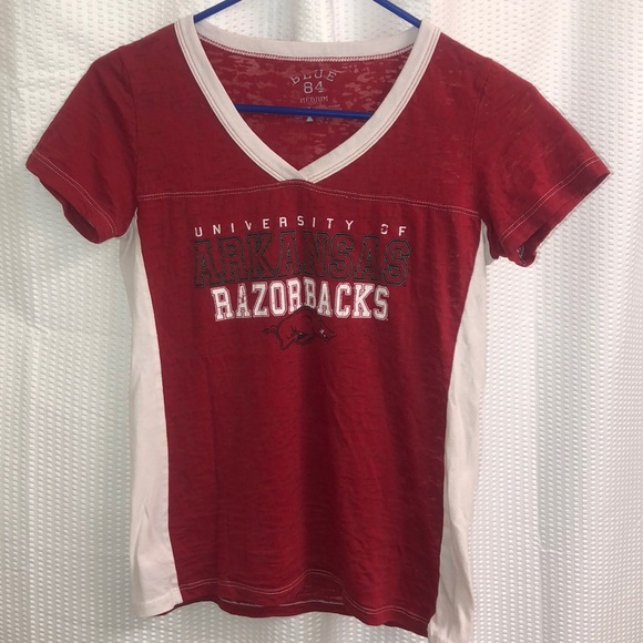 Red Arkansas Razorbacks T-shirt, kind of see through. Super comfy!