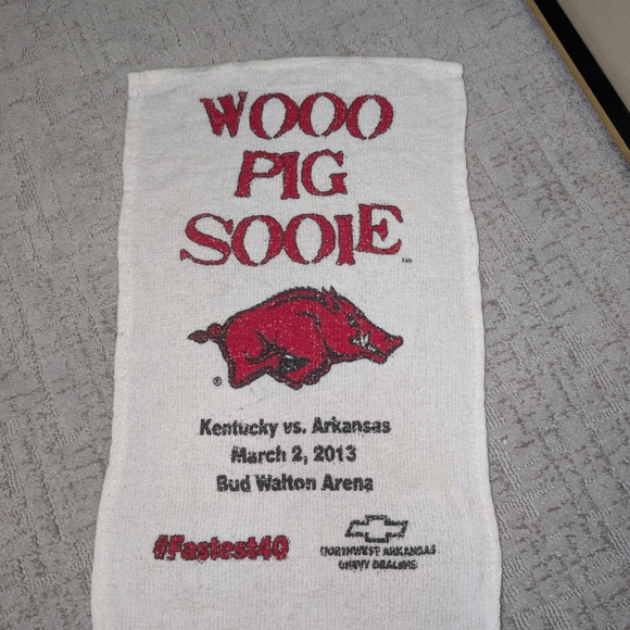Show your team spirit with this Arkansas Razorbacks rally towel. Featuring a bold red design on a white background, it's perfect for any fan.