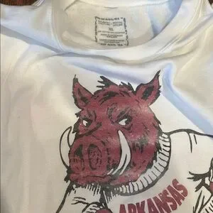 Show your team spirit with this Arkansas Razorbacks white sweater. Perfect for any fan, this sweater combines comfort and style.