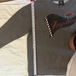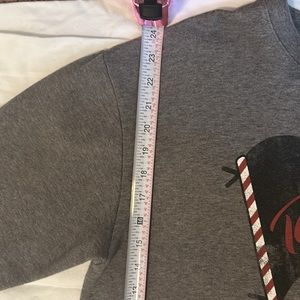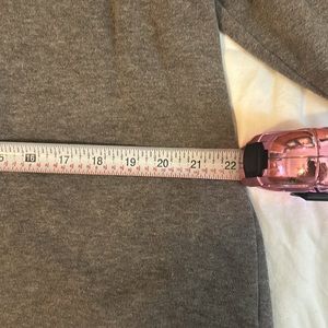 This sweatshirt is very soft. The sleeve length from the seam is 20”. The length from the top of should to bottom of sweatshirt it 23 5/8”. The mid waist is 22 5/8”.