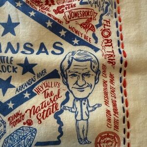 Charming tea towel featuring Arkansas-themed illustrations in red and blue. I have three available if you’d like to bundle and give them as gifts!