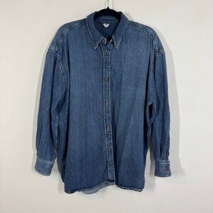 Denim Button Down Shirt Blue Size 40 Oversized Long Sleeve Casual Top