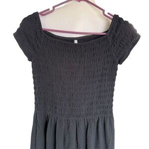 This beautiful black Arket dress is perfect for any occasion, from travel to parties and everything in between. The dress features a unique off-the-shoulder neckline and a fit and flare style that accentuates your figure. The dress is made of a comfortable and high-quality blend of cotton and spandex, and it has a smocked feature that adds a touch of elegance.
