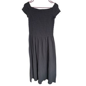Arket Dress Smocked Midi Black Sz 8 Of The Shoulder Gypsy Witchy Romanticgoth
