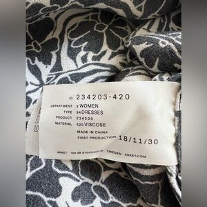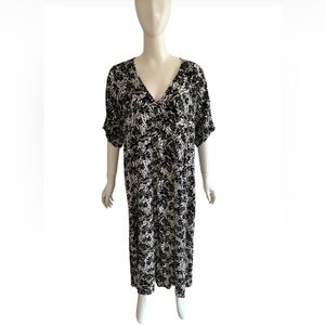 Arket Kaftan Maxi Dress V-neck Size EU 38 US 8 Floral Black White Short Sleeve