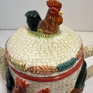 Enhance your home with Arket's elegant decor accent in soothing cream and brown hues. Excellent condition. No chips, cracks, or stains. This small teapot/creamer gained popularity in the mid-20th century as collectibles and decorative items. Measure: 5 1/2 inches to the rooster’s head from the bottom of the teapot 6 inches from the handle to the spout of the teapot wide 4 inches in diameter to top 3 3/4 diameter on the bottom.