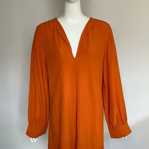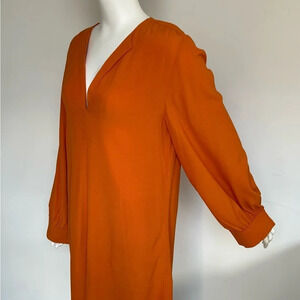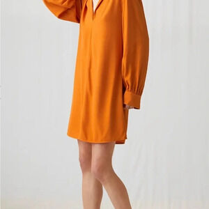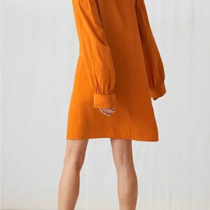 Arket Tunic Dress Orange Mini Crepe Long Sleeve Women's A-line US 12 L NWOT
