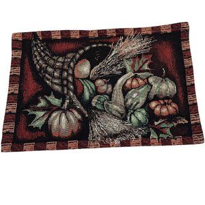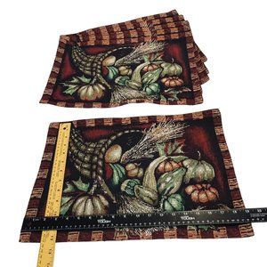Arlee Home Fashions Set 6 Fall Harvest Burgundy Tapestry Placemats Cornucopia