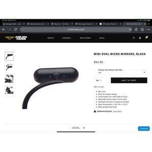Arlen Ness Motorcycle Oval Micro Mirror for left side rear view in chrome finish. Perfect for enhancing your bike's aesthetics while ensuring safety.