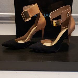 The pump that changes it all. From workwear basic to night-out elegant, this ankle cuff pump is always a must. A sophisticated cut and gold-tone metal hardware have us dreaming of new ways to wear it again and again. With box and cloth bag