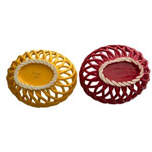 Arlington Designs Red Yellow Braided Woven Ceramic Bowls Oval Design Basket 10”