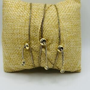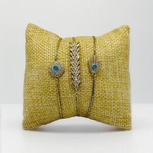 Set of 3 Adjustable Pull Chain Bracelets – Gold Tone CZ & Opal Look Arm Candy Hamsa Evil Eye