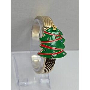 Arm Candy Christmas Tree Ladies Cuff Watch Quartz Gold Tone New Battery Xmas Fun