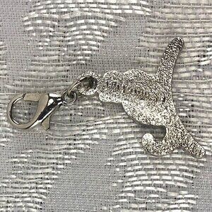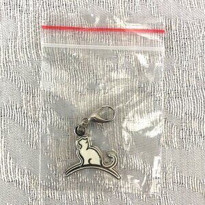 Arm & Hammer Kitty Krew Sitting White Silhouette Cat Charm w/ Lobster Claw Clasp