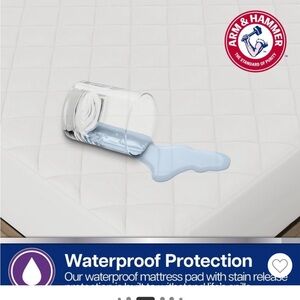 Enhance your sleep with the Arm & Hammer Supreme Loft Mattress Pad. This white pad provides a plush, comfortable surface and features allergen and waterproof protection for a clean, fresh sleep environment.