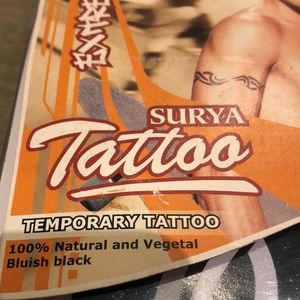 Surya Tatto. 100% natural and vegetal bluish black tattoo. Last about 10 days on skin